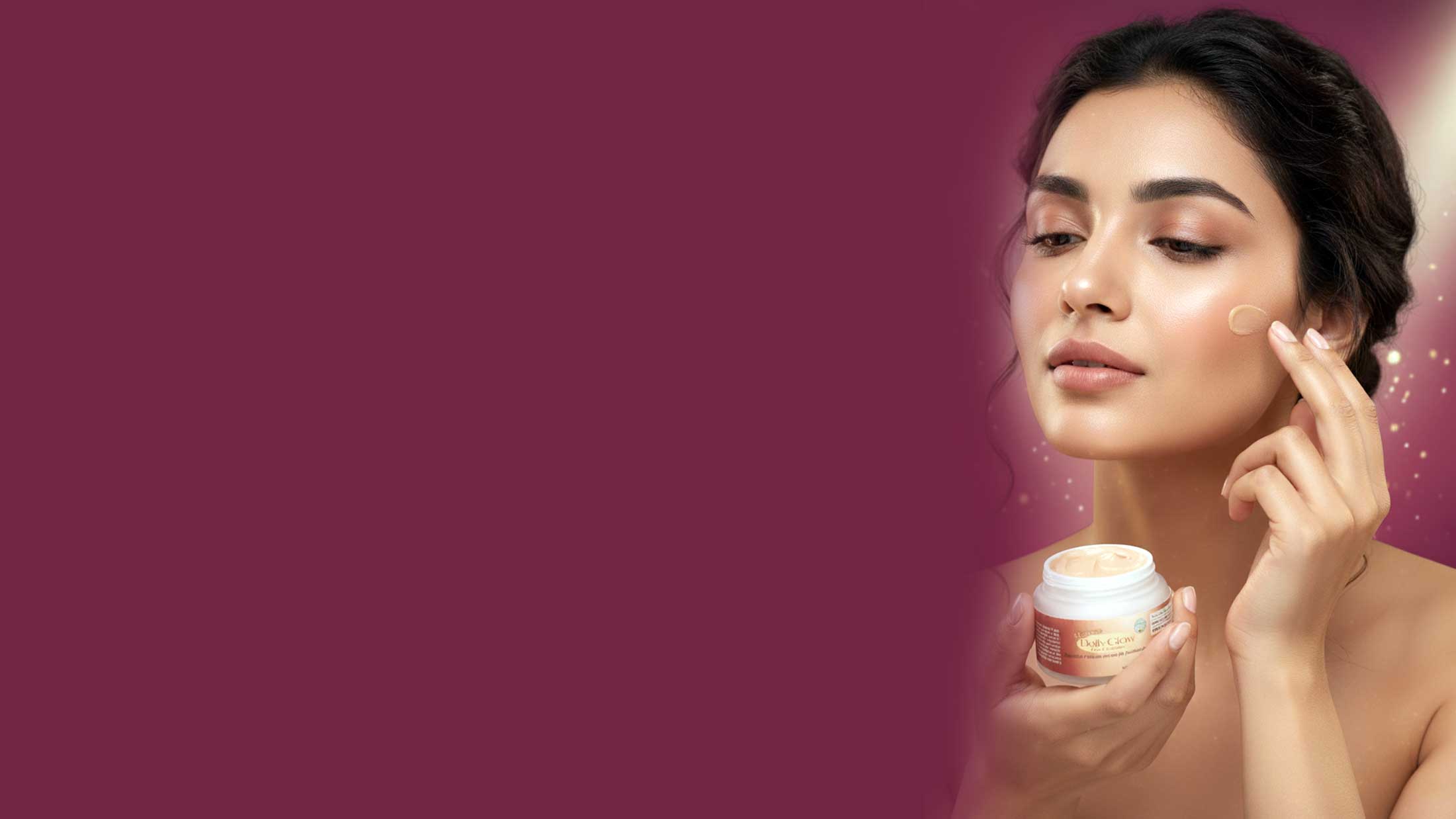Take a small amount of Elegance Daily Glow Face Cream on your fingertips.